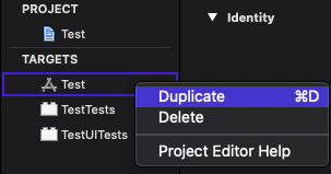 저렇게 기존에 있던 target을 duplicate 하고!