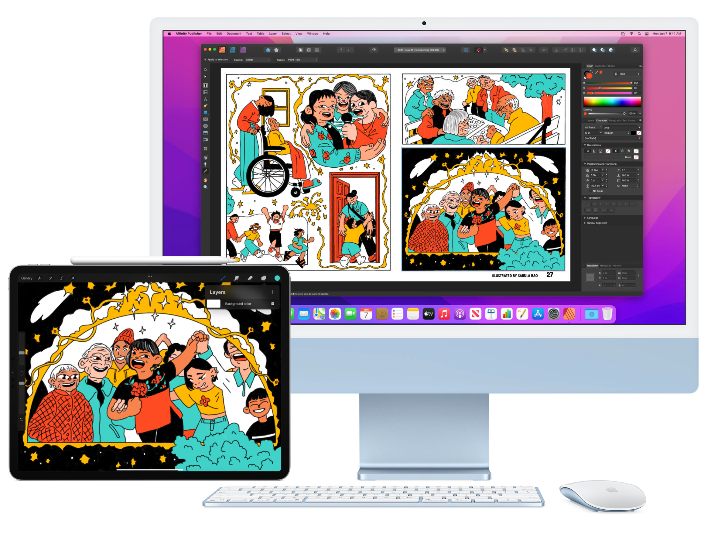 세상에 하나의 마우스나 키보드로 맥 / 맥북 / 아이패드 세가지를 놓고 이어진것처럼 반응합니다. 드래그앤드롭으로 사진이나 파일 복사도 가능하고, 하나의 연결된 화면처럼 이용할 수도 있다고 합니다.