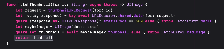 비동기 함수가 에러를 던질 경우 try await 로 작성해주면 된다.